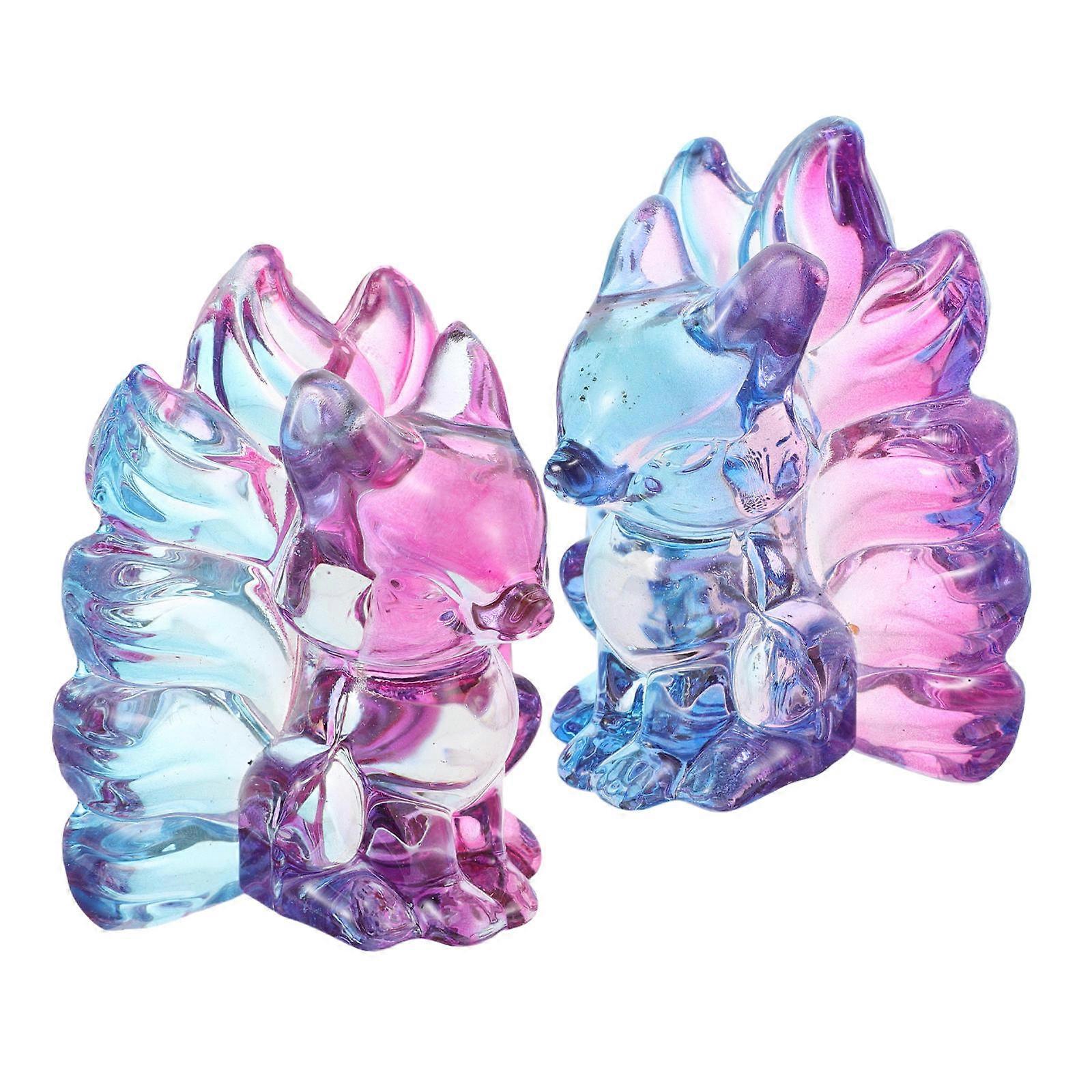 Crystal Fox Statue Hand Carved Glasswork Home Office Desk Table Decor Assorted Color 2Pcs