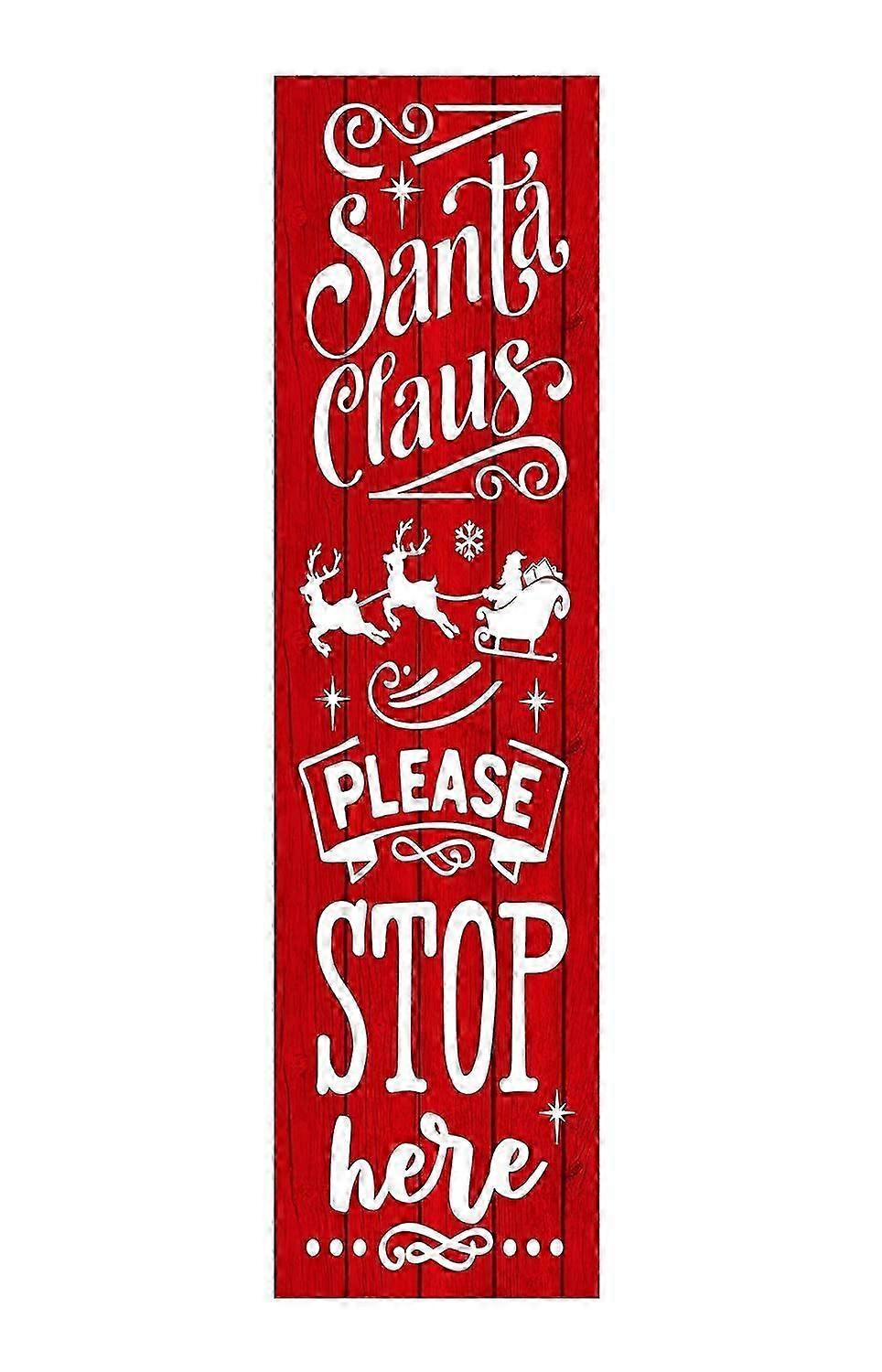 Santa Claus Please Stop Here - Unique Vertical Christmas Wooden Sign, 24" Hanging/Standing Farmhouse Christmas Decor, Directly Printed Home Decoration