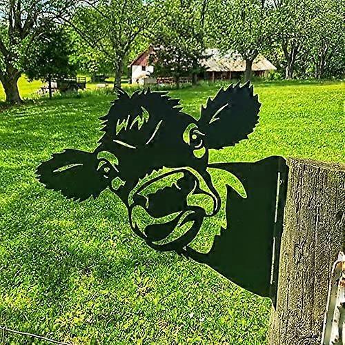 Farm Metal Art Decor Outdoor Garden Fence Decoration Peeping Cow Hanging Artwork