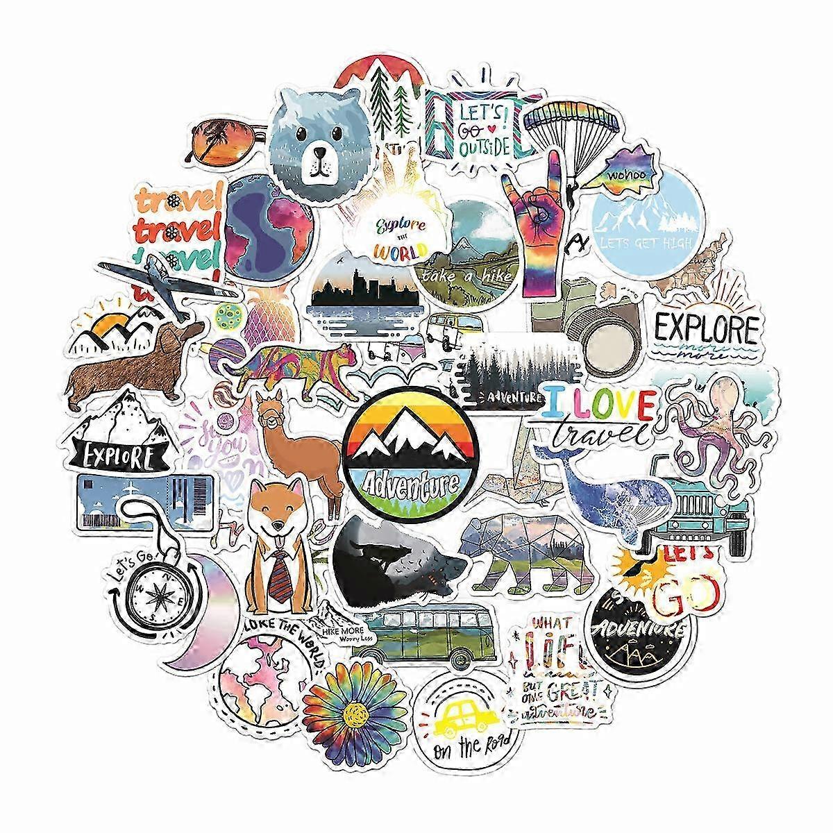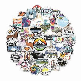Water-Resistant Vinyl Travel Stickers, 50-Pack Adventure Motifs for Outdoor Luggage & Suitcases
