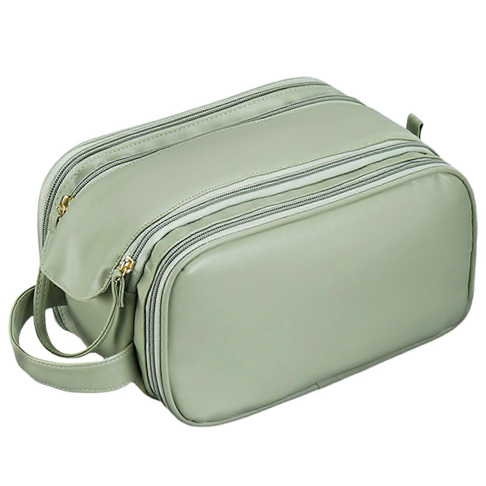 Waterproof Beauty Storage Bag Large Travel Makeup Organizer Storage Case PU Leather Toiletry Bag for Women Green