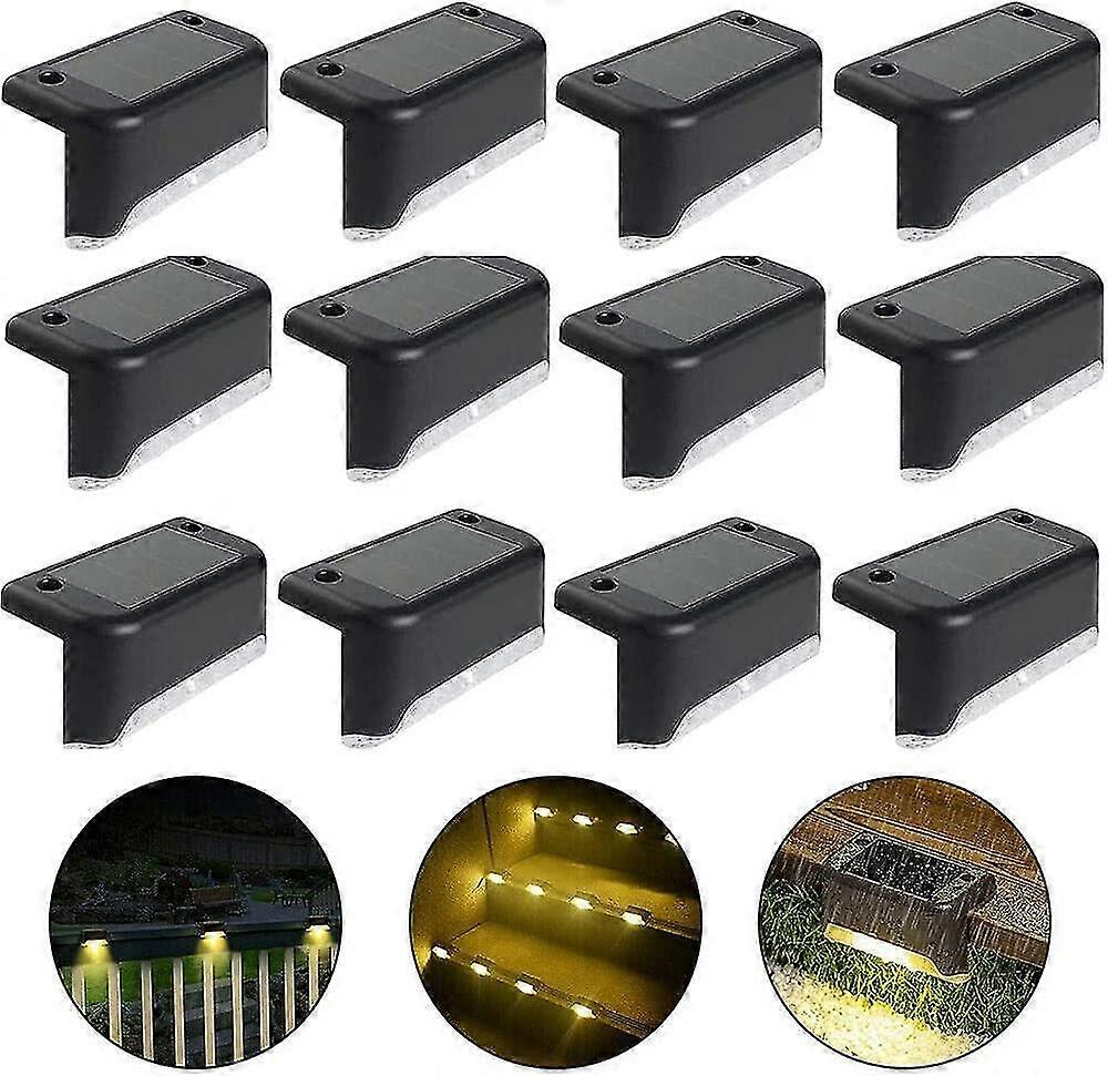 Waterproof Solar Fence Light, Solar Deck Light, Stair Light, Ip65 Led Solar Garden Lights For Patio Stair Fences (warm Light-black, 12 Pcs)