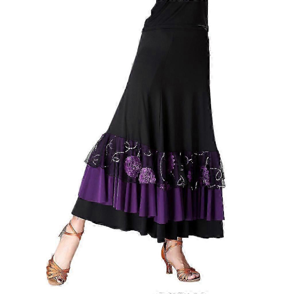 Flamenco Ballroom Dance Costume Waltz Sequined Long Skirt Black+Red