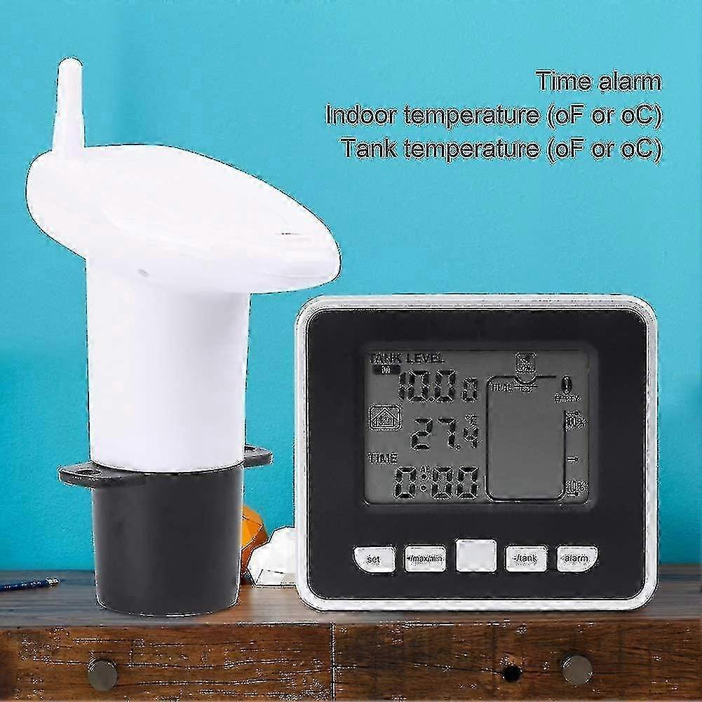 Water Level Meter Ultrasonic Water Tank Liquid Depth Level Sensor With Temperature DisplayUltrasonic Liquid Level Meter ts ft002+tank level jaThis meter monitors the liquid depth level in the tank and displays on a 10-element LCD bar graphIt can keep min/max records of tank liquid levelSupports tank liquid level high/low alarm and tank empty alertDisplays indoor temperature (ou) and tank temperature (ou) at the same timeThe receiver can be placed upright on a desk or hung on the wall Note: Due to the light and screen setting difference, the item's color may be slightly different from the pictures. Please allow slight dimension difference due to different manual measurement.