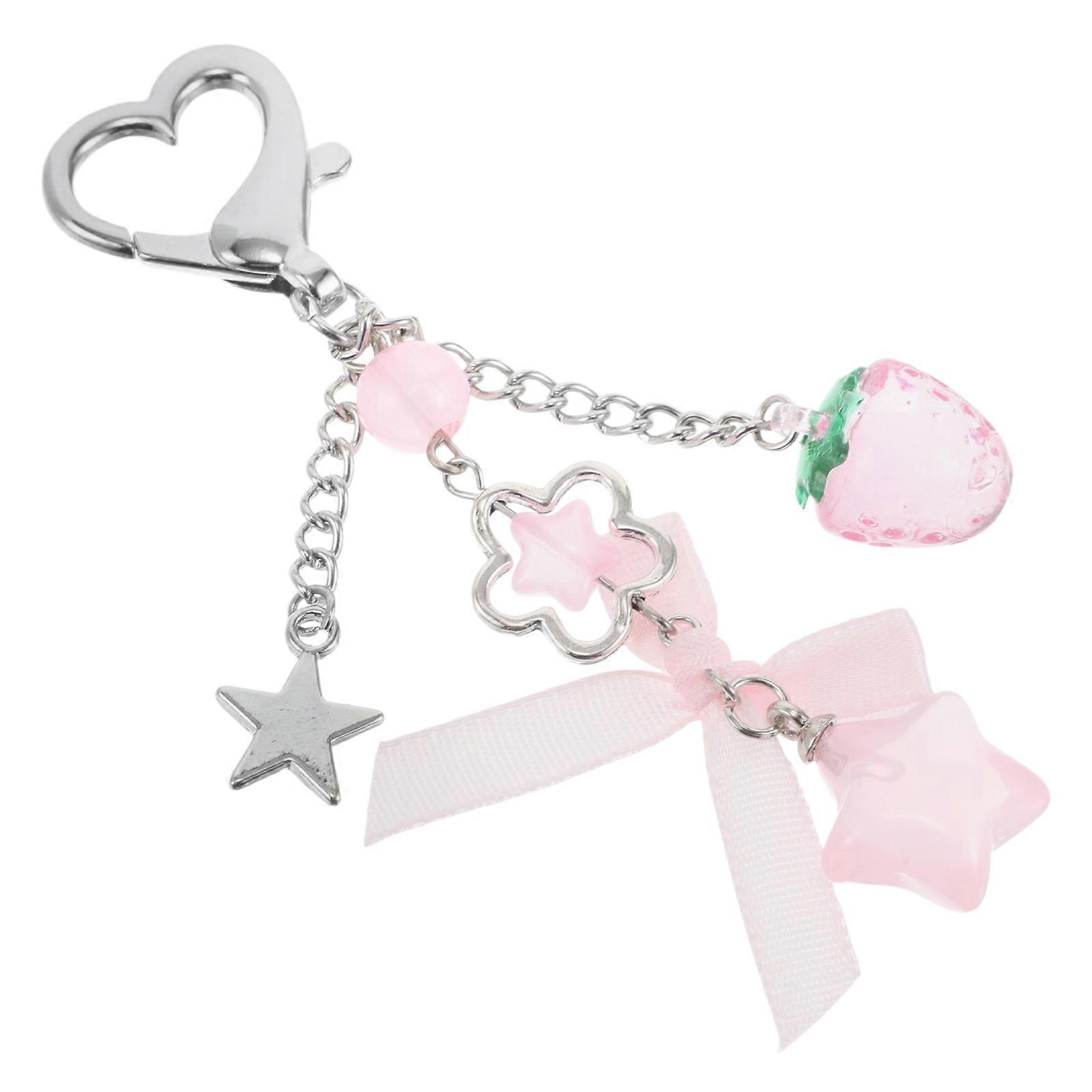 Aesthetic Keychain Durable Fade Resistant Strawberry Bow Star Flower Pendants For Keys Purses 1Set