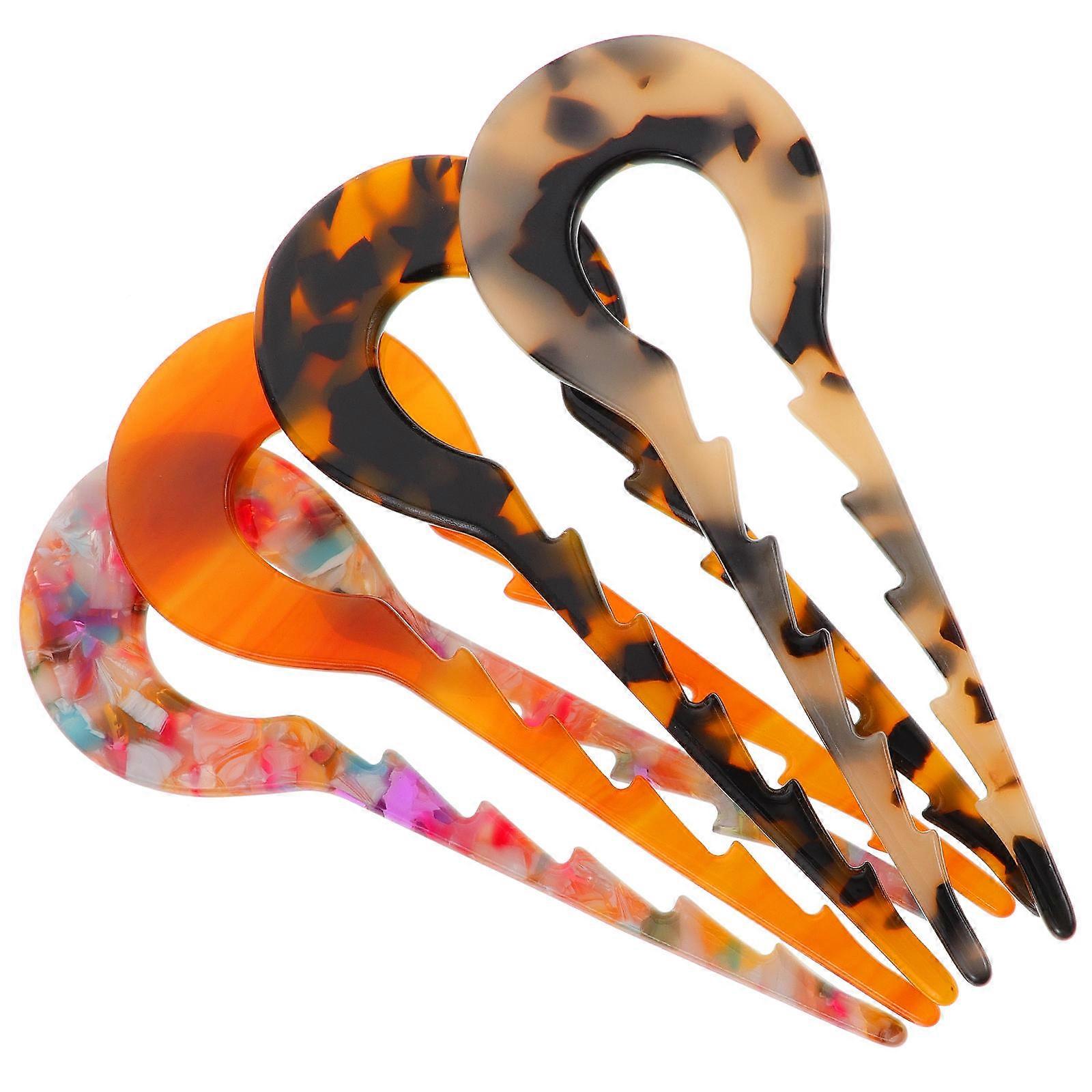 Acetate U Shaped Hairsticks 4Pcs Hair Fork Women Hairpin Assorted Color Hairstyling Helpful Tool for Styling