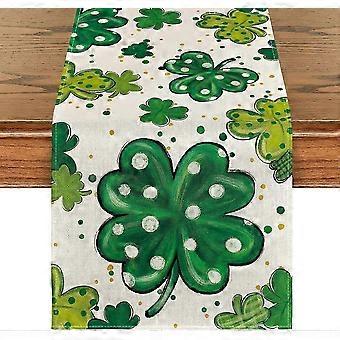 Watercolor Shamrock St. Patrick's Day Table Runner, Seasonal Holiday Kitchen Dining Table Decoration for Indoor Outdoor Home Party Decor 13 x 72 Inch