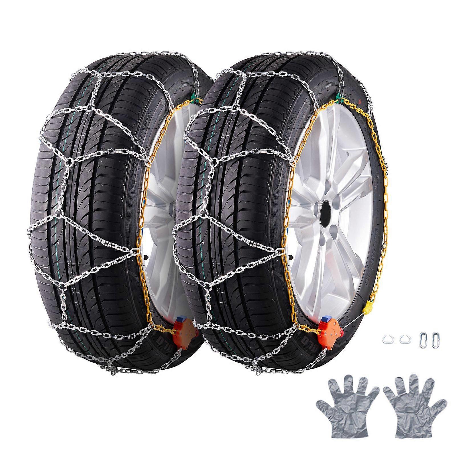 Snow Tire Chains, Manganese Alloy Steel Emergency Traction Tire Chains, Tire Snow Chains for Cars, Pickups, SUVs, and Trucks, Silver, 2PC