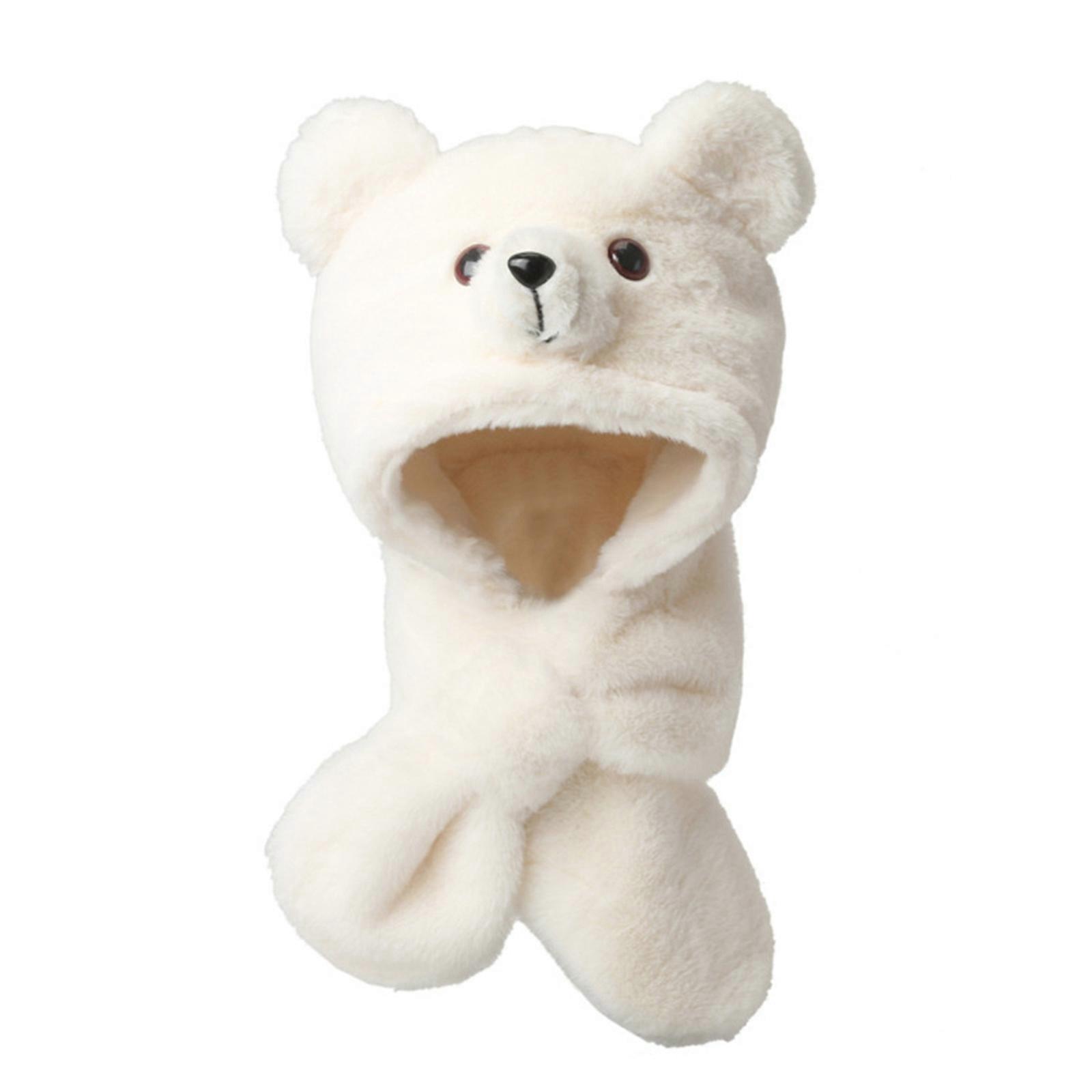 Upgrades Bear Designs Kids Scarf & Hat Bear Themed Caps with Scarf Perfect Accessory for School & Travel in Cold Weather White