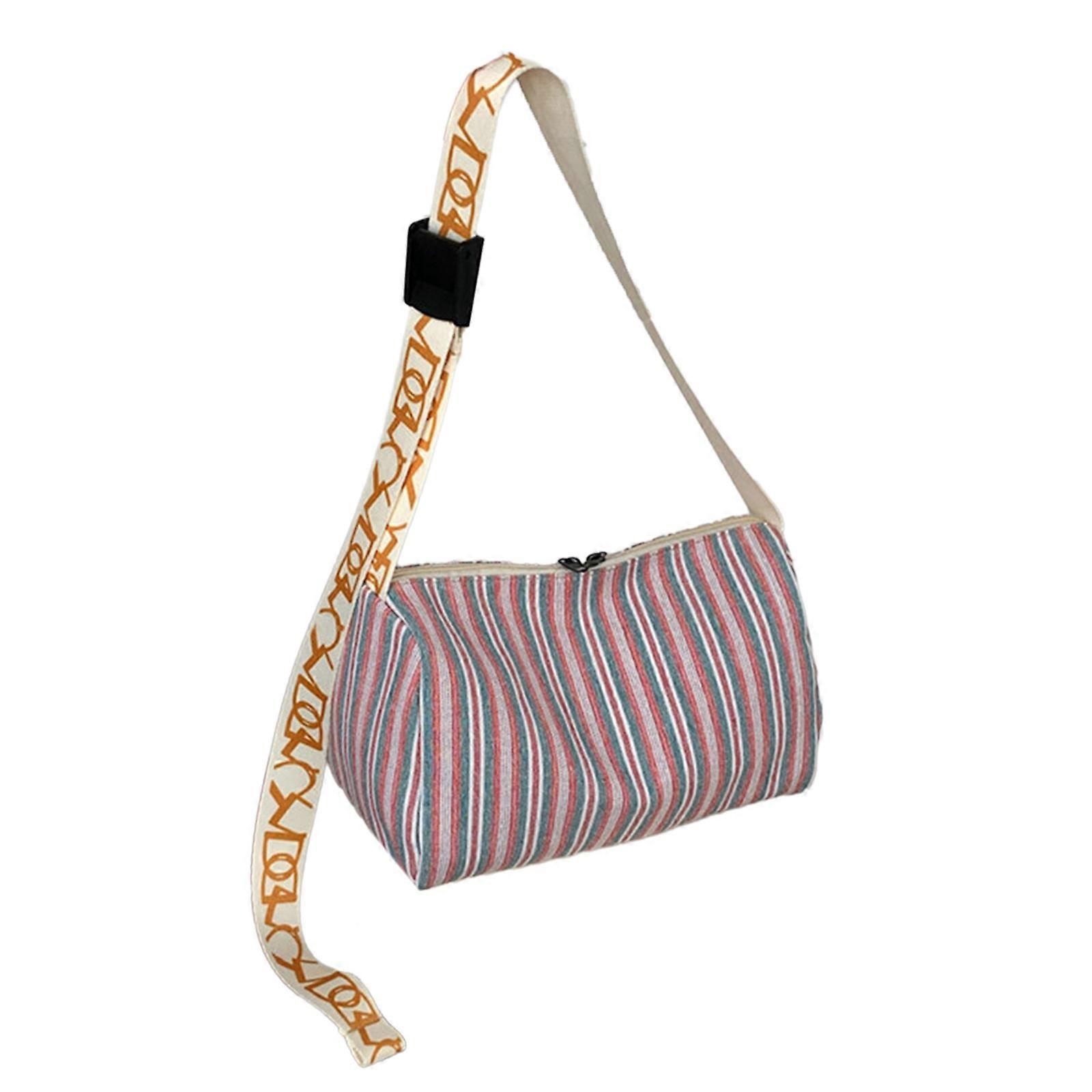 Upgraded Striped Pillow Bag Elegant & Versatile Sholuder Bag Fashionable Girls Bag for Commuting & Traveling Durable Pink