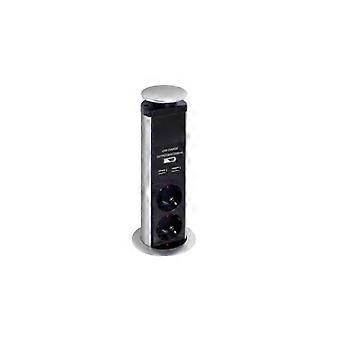 Retractable power strip - PEREL - Schuko - 3 sockets - 2 USB ports - 16 A