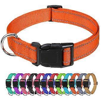 Reflective Adjustable Nylon Dog Collar with Quick Release Buckle for Small Dogs, Orange (Size S 2.0cm/30-40cm)