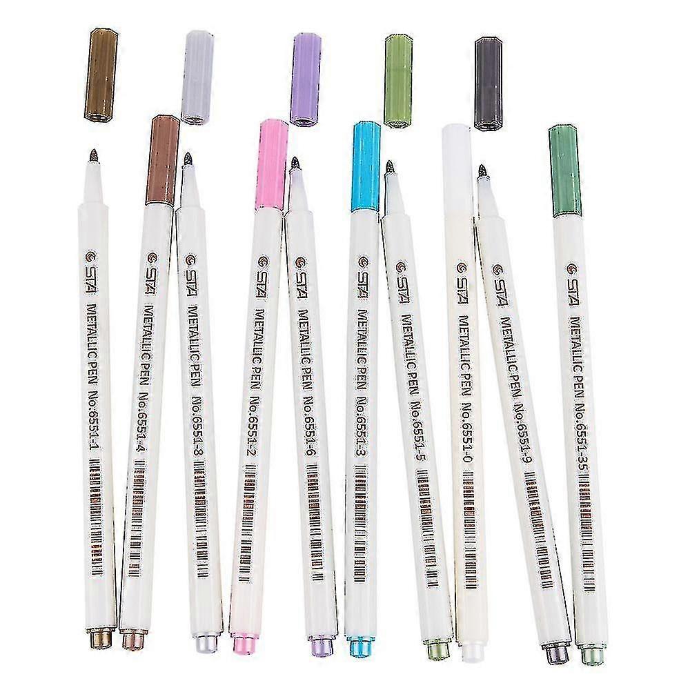 10 Pcs Assorted Colored Metallic Permanent Paint Markers Pens Metallic Marker Pens Description Versatility: Ideal for Adult Coloring Books, Rock Art Painting, Glass, DIY Photo Album, Black Cardstock, Sketchpad, Scrapbooking, Pottery, Wedding Craft, Dark Paper, Greeting Cards, Calligraphy and more.ideal for drawing, Can be used in classroom or Can be used for adult book drawers. Higher quality, water ink, acid free and non-toxic ,quick-dry,Super smooth application,Ergonomically designed,Light-weight, Easy to hold and Incredibly durable. Pen Size:16.5cm . Color: Gold, silver, white, pink, olive, green, blue, black,purple,brown. Package Includes: 10 x Metallic Marker Pens(each color one piece). Note: 1.Must to store the metallic marker pens horizontaly, sit up or down is forbidden. After use, please put on the cover because it is easy to dry. 2.When you use the white color,you need wait for about 20s then the color will be displayed. white is only suitable for working on black card paper.