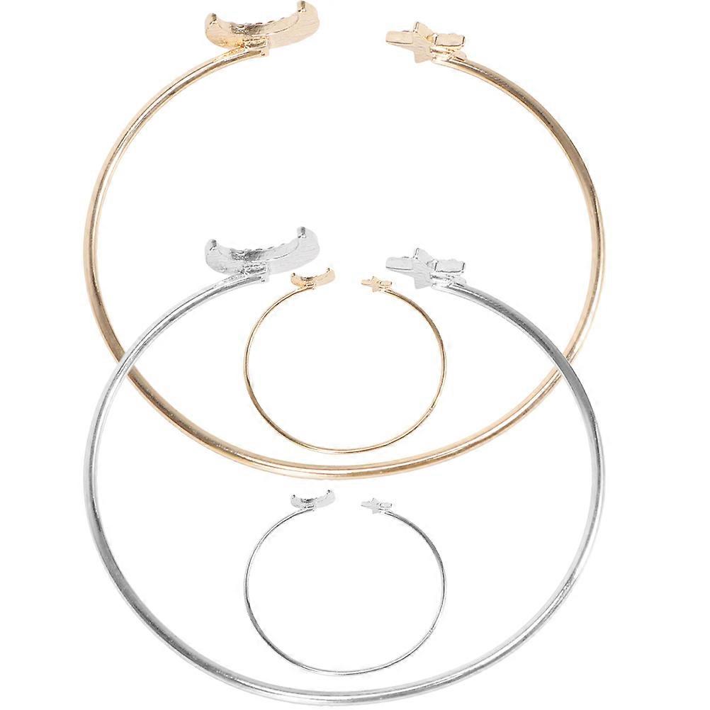 Assorted Color Alloy Moon Star Cuff Bracelet for Jewelry Use Adjustable Opening 4Pcs