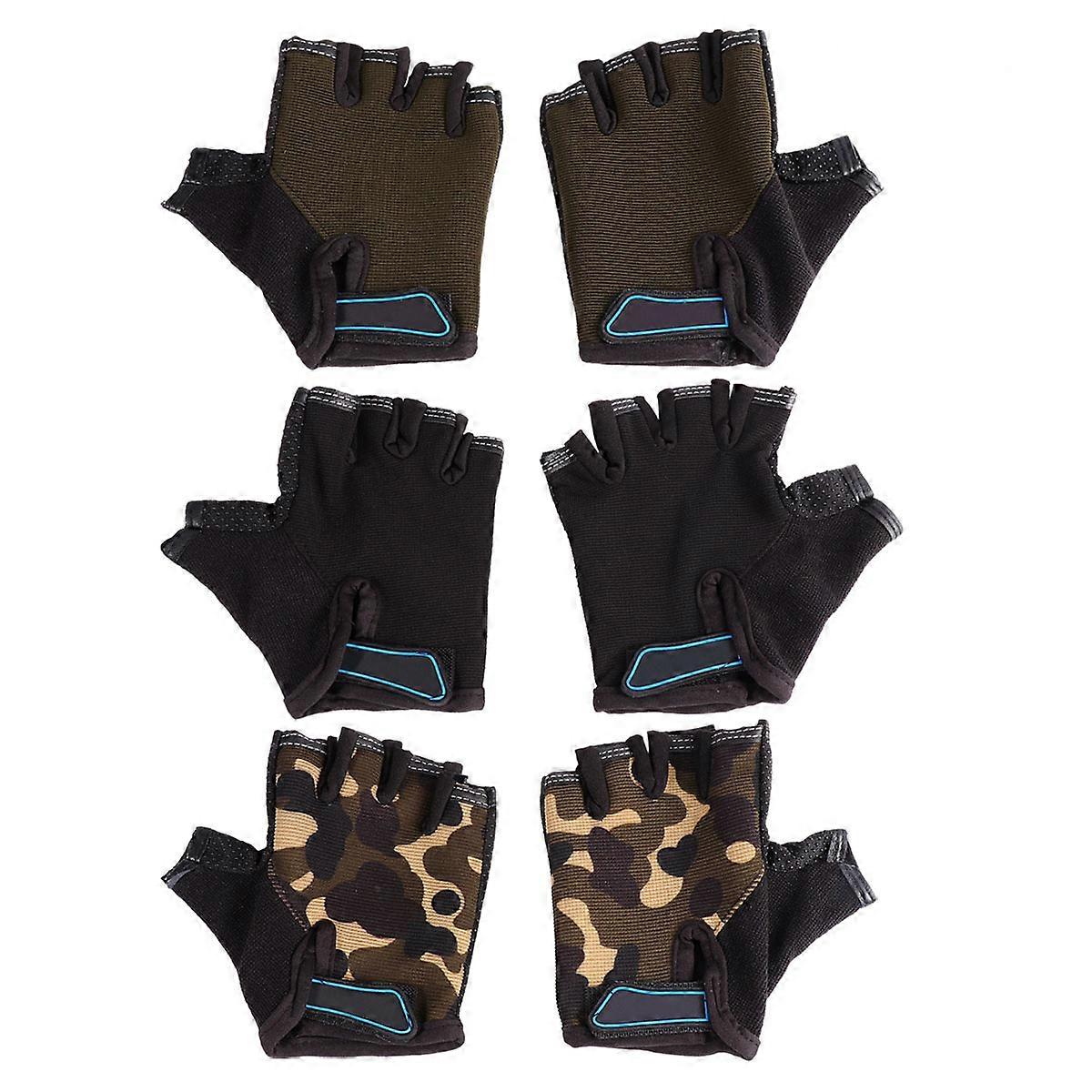 Breathable Sports Gloves 9 Pairs Half Finger Design for Kids Outdoor Fitness Activities Black Camouflage Green