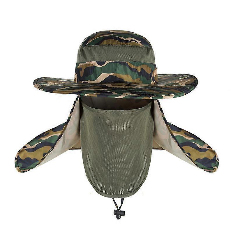 Men Women Wide Brim Boonie Snap Sun Hat Neck Cover Flap Summer Outdoor Fishing Visor Cap