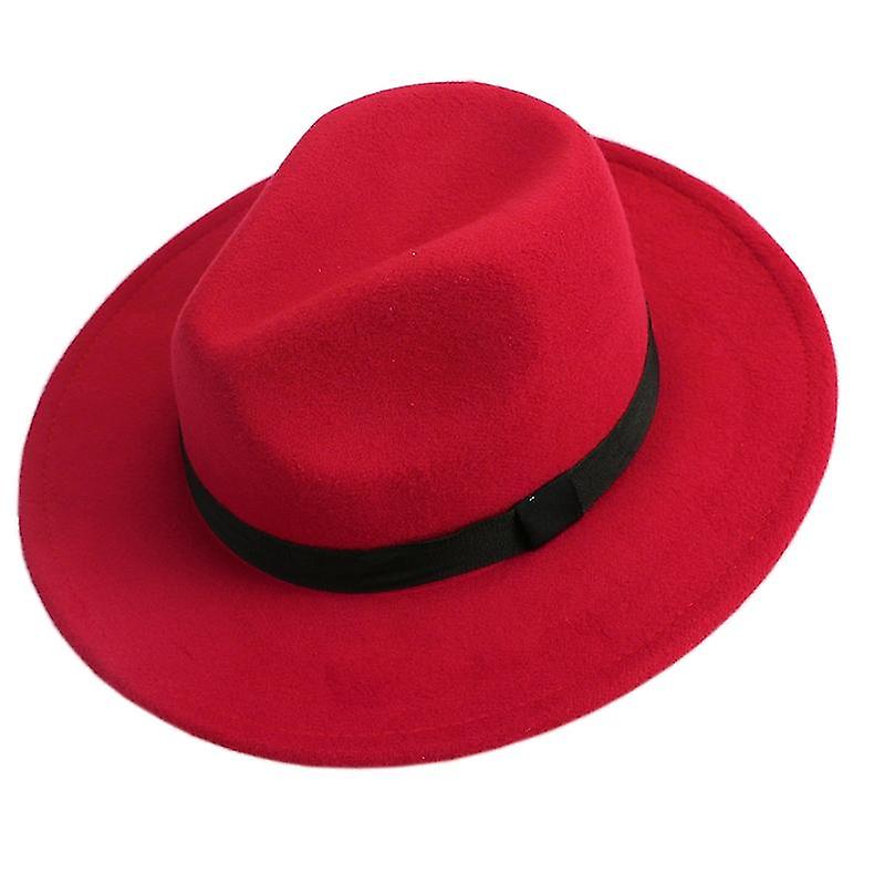 Men Women Jazz Bowknot Hard Felt Fedora Panama Bowler Wide Hat Brim Gangster Cap-r