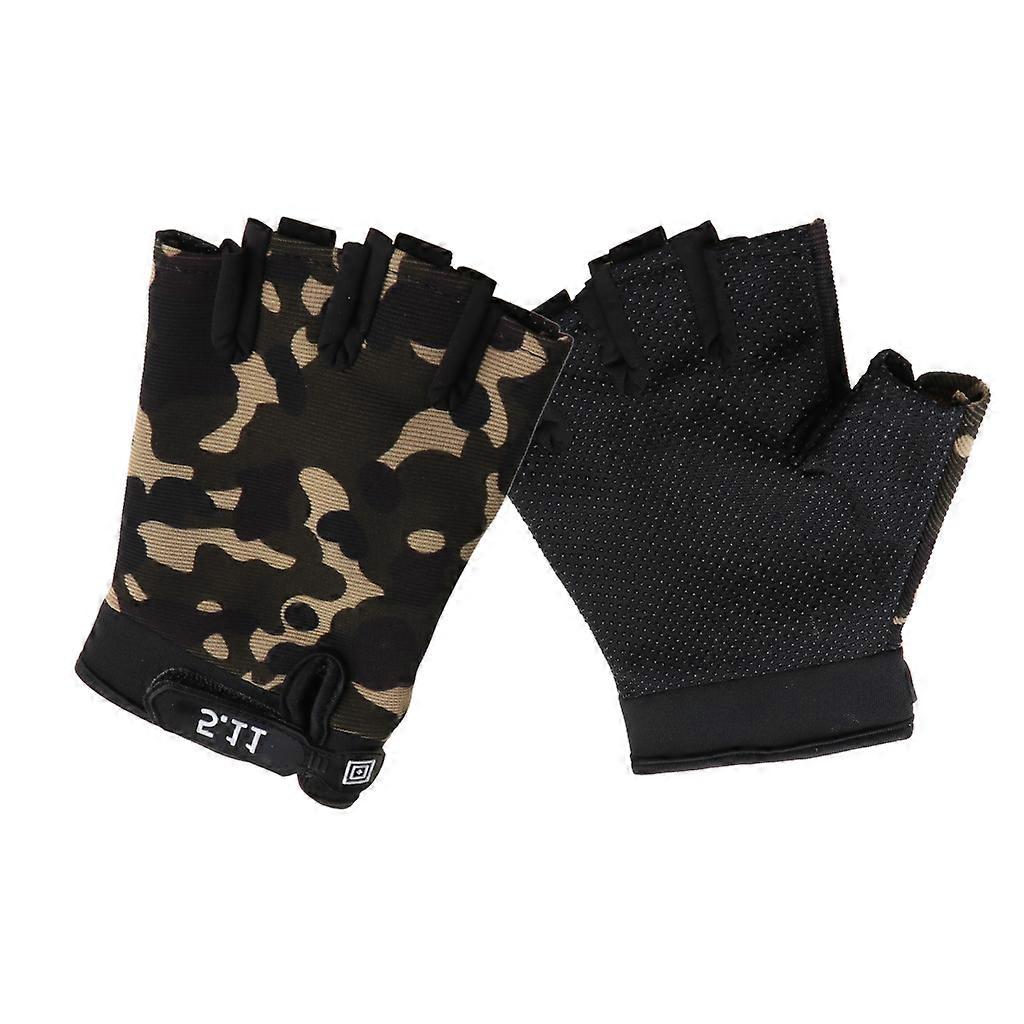 Men Camouflage Tactical Gloves Outdoor Sport Cycling Half Finger Anti-Slip Shock-Absorbing Fitness Fingerless Mittens Clear