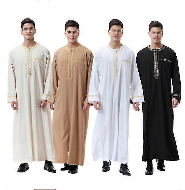 Men Muslim Saudi Robe Kaftan Dubai Tunic Long Top Blouse Thobe Clothes