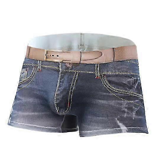 Men Boxer Underwear Imitation Jeans 3D Printed Boxer Briefs Mid-rise Elastic Waistband Double-Sided Reinforcement Panties