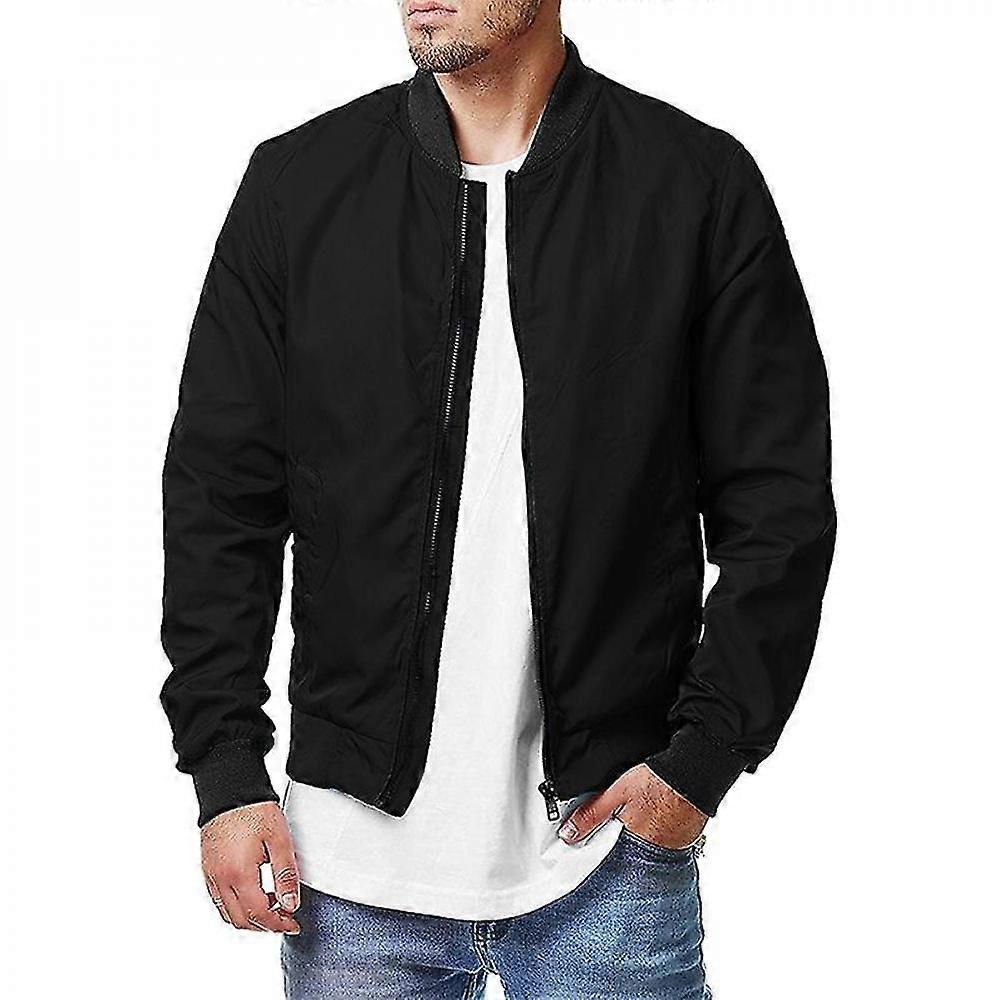 Men Bomber Jacket Long Sleeve Full Zip Casual Coat Stand Collar Outwear With Pockets TOV