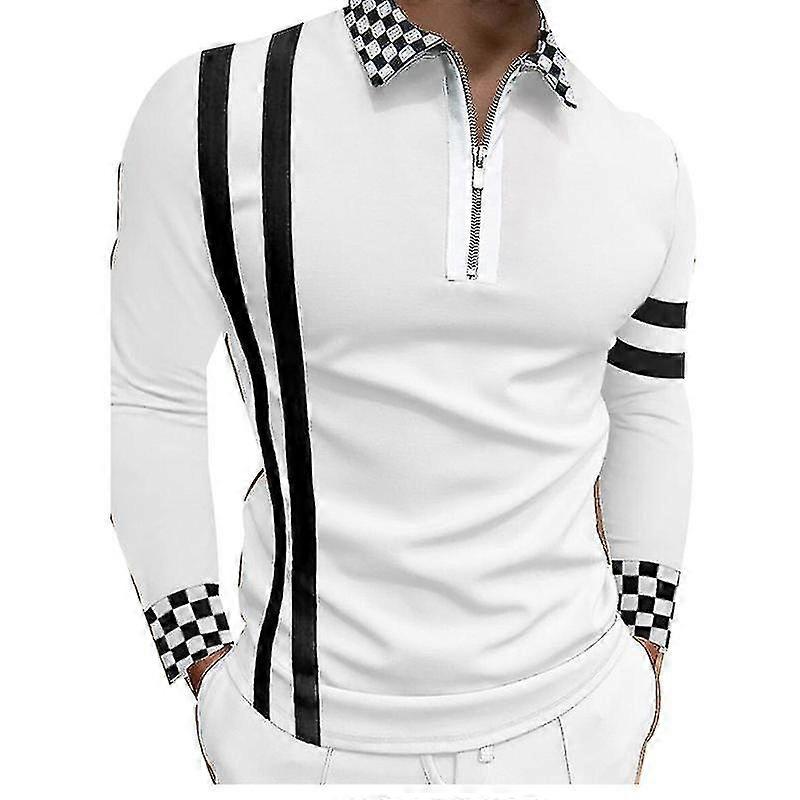 Mens Long Sleeve Polo Shirts, Casual Zipper Printed T-shirt Tops