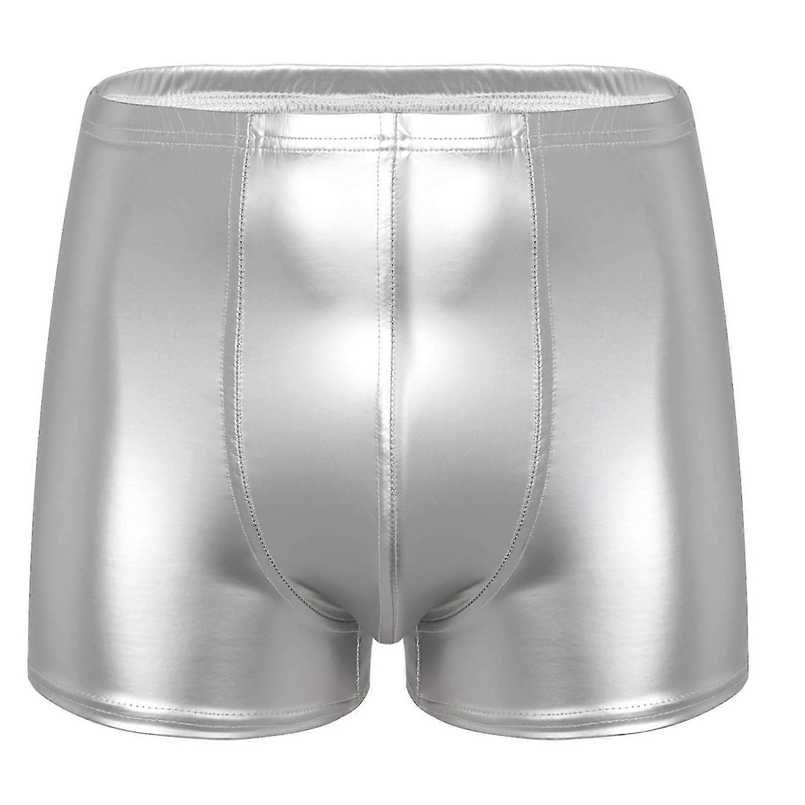 Mens Boxers Pants Wet Look Patent Leather Shorts Bulge Pouch Underwear Nightclub Lingerie Clubwear Dancing Hot Pants Costumes