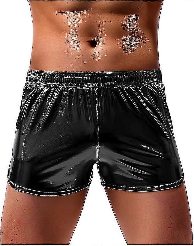 Men's Sexy Metallic Shiny Boxer Shorts Sparkly Rave Hot Short Pants With Pockets