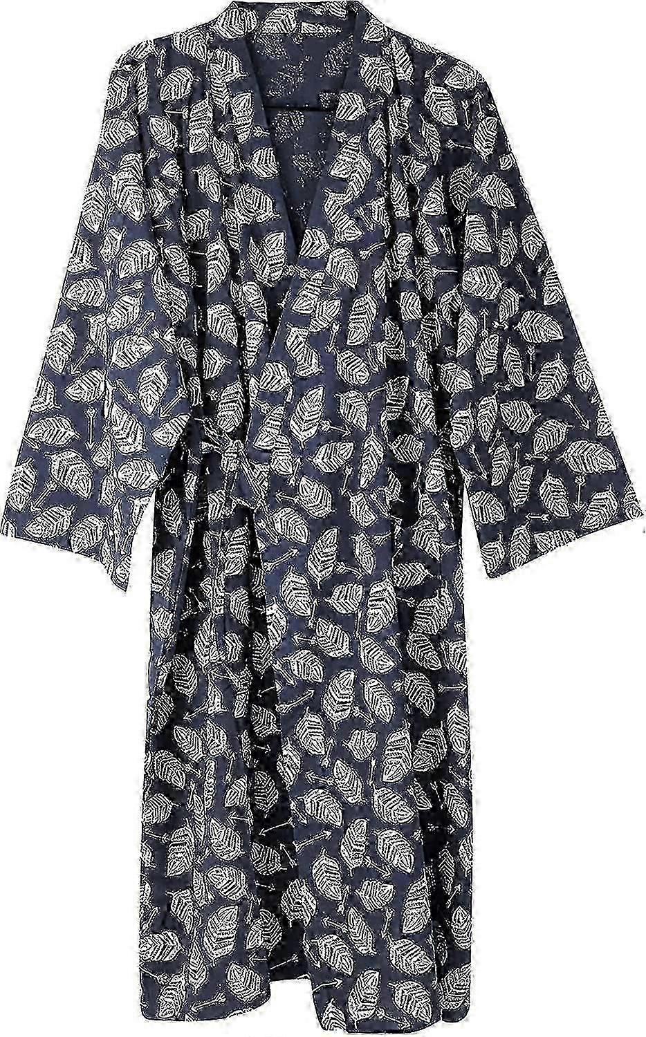 Men's Kimono Robes Cotton Dressing Gown Khan Steamed Clothing Bathrobes Long Sleeve Sleepwear Loungewear Nightwear. Navy
