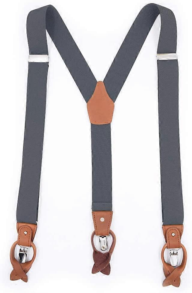 Men's Y-Shaped Heavy Duty Suspenders Strong Clips & Leather Button End High