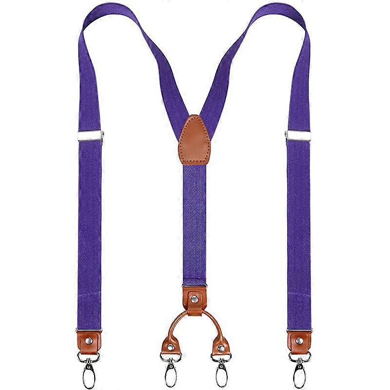Men’S Y-Shaped Wide Heavy Duty Suspenders With 4 Metal Clips Adjustable Elastic Straps-Purple