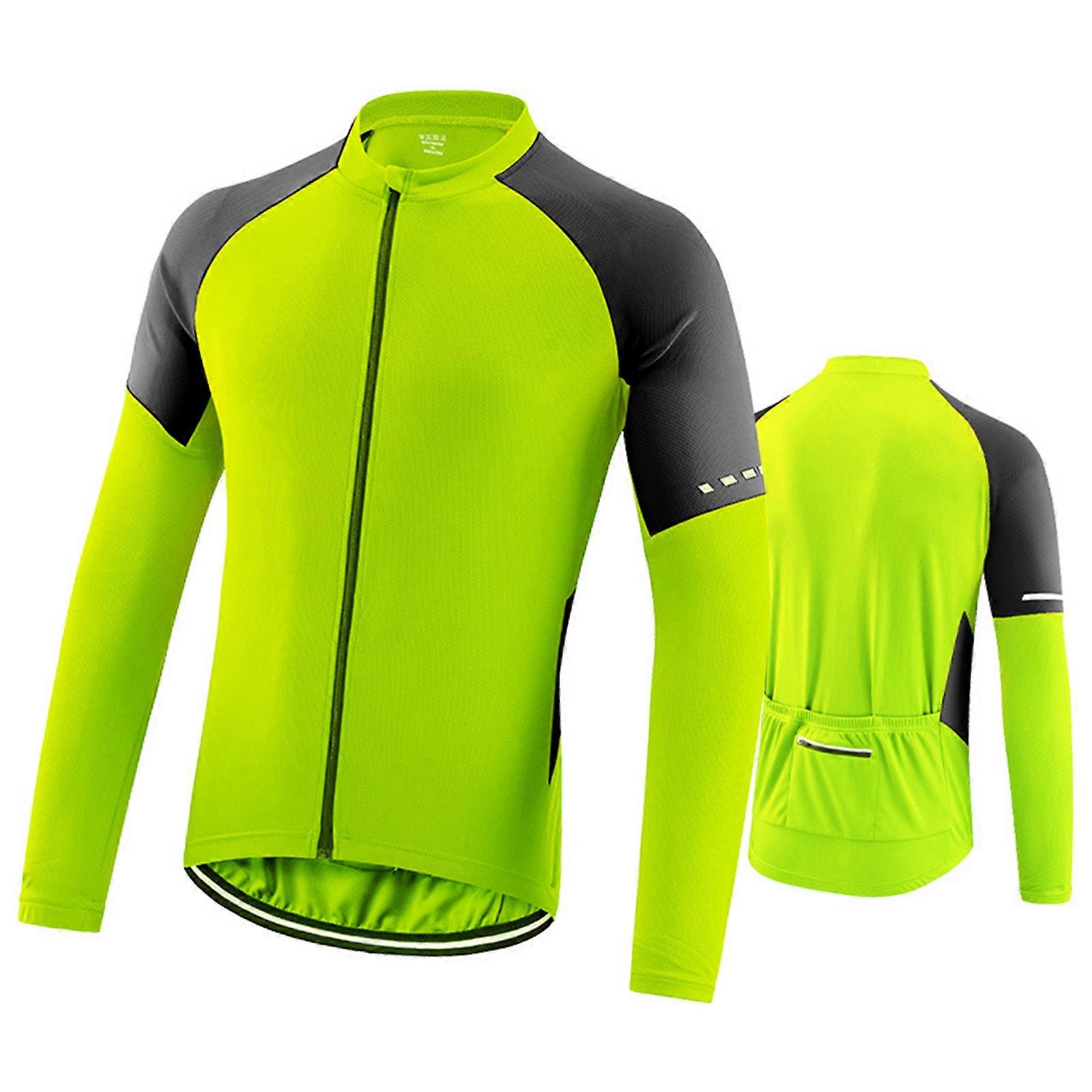 Men's Cycling Jersey Full Zipper Long Sleeve Bike Shirt, M-XXL, Green/Black/Blue