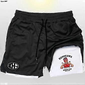 Men's Compression Fitness Quick Dry Double Layer Shorts Boxing Sports Printed Sweatpants