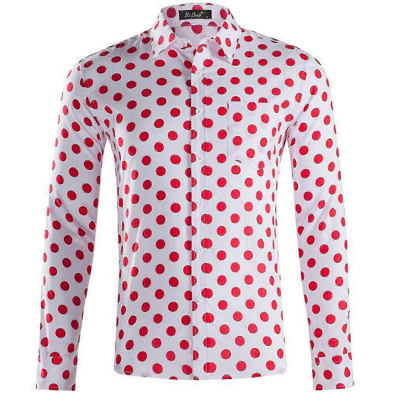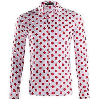 Men's Polka Dot Printed Long Sleeve Shirt Button Formal Casual Shirt f74