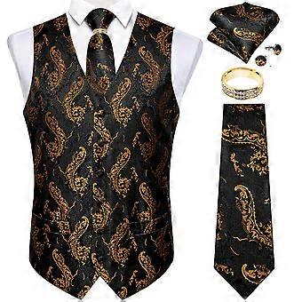 Men Vest Tie Set Classic Wedding Paisley Black Gold Paisley Tuxedo Suit Vest Formal Dress Male Waistcoat Sleeveless Vest Dibangu