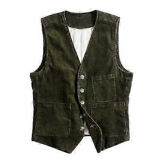 Men Waistcoat V-Neck Sleeveless Single Breasted Vest Coat with Multi-pocket Design Solid Color Corduroy Waistcoat[HS]