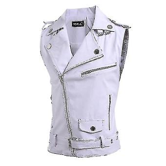 Ανδρικό Δερμάτινο Γιλέκο Slim Fit Multi-zipel Lapel Cropped Leather Vest