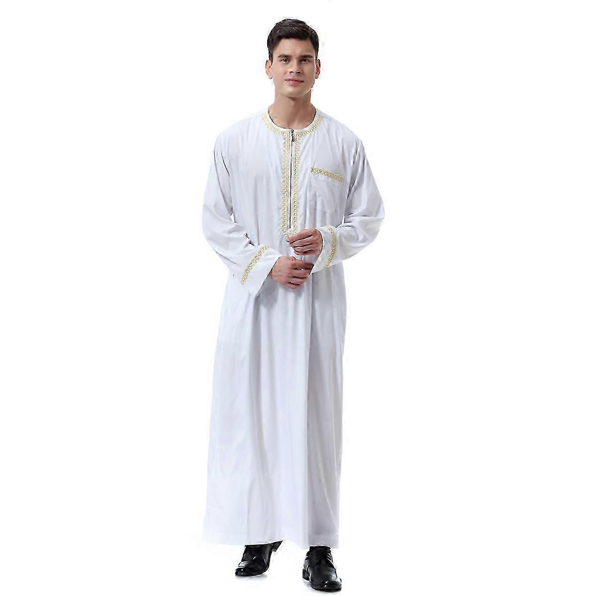 Men's Islamic Jubba Thobe with Print & Zipper - Long Kimono Robe for Muslim Arab Wear, Saudi Abaya Caftan Dubai Dressing