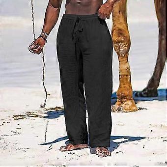 Men's Summer Breathable Linen Pants Lightweight Yoga Beach Cotton Linen Solid Color Pants Loose Casual