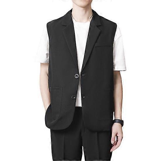 Men Suit Vest Lapel Sleeveless Two-Button Business Waistcoat Pockets with Side Placket Solid Color Casual Vest Coat
