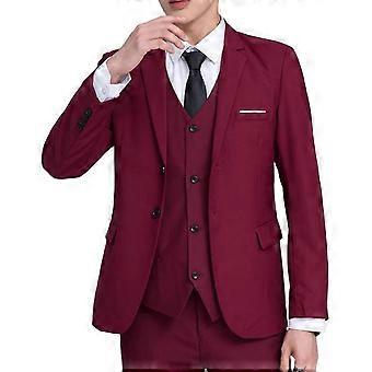 Men Suit Coat Lapel Long Sleeve Two Buttons Suit Jacket Solid Color Flap Pockets Slim Fit Business Outwear