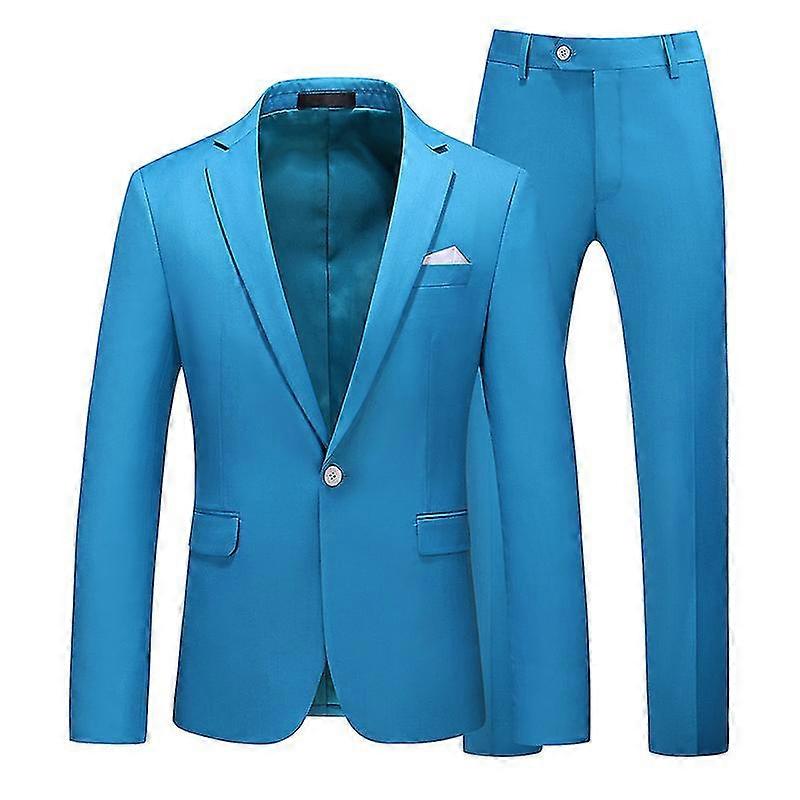 Men's 2 Piece Suit Slim Fit 1 Button Solid Formal Wedding Tux Blazer & Pants Blue