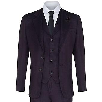 Ανδρικό Μωβ Δαμάσκηνο 3 Κομμάτι Τουίντ Ψαροκόκαλο Κοστούμι