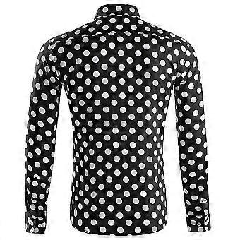 Ανδρικό πουά τυπωμένο μακρυμάνικο πουκάμισο Button Επίσημο casual πουκάμισο-YH