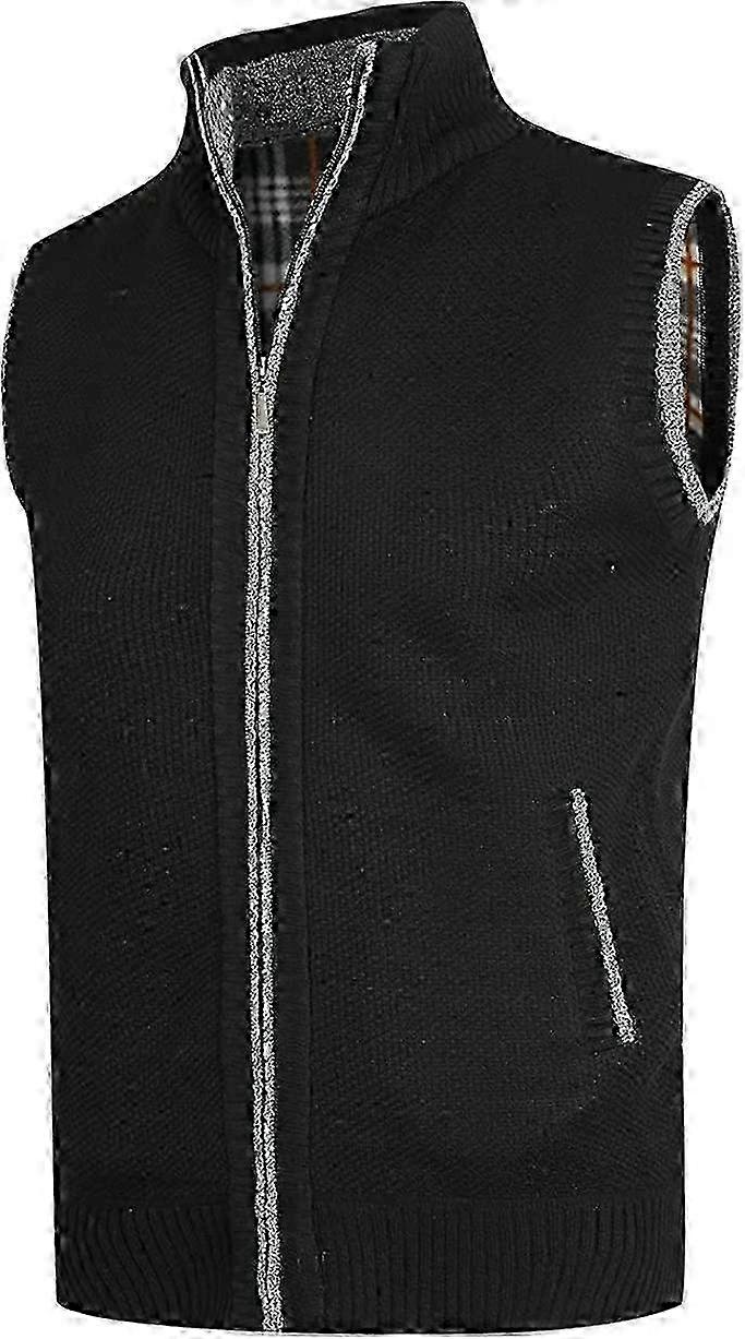 Men's Winter Knitted Wool Vest Cardigan Black Size XL