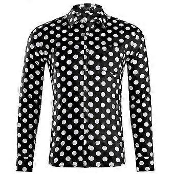 Ανδρικό Polka Dot τυπωμένο μακρυμάνικο πουκάμισο κουμπί επίσημο casual πουκάμισο