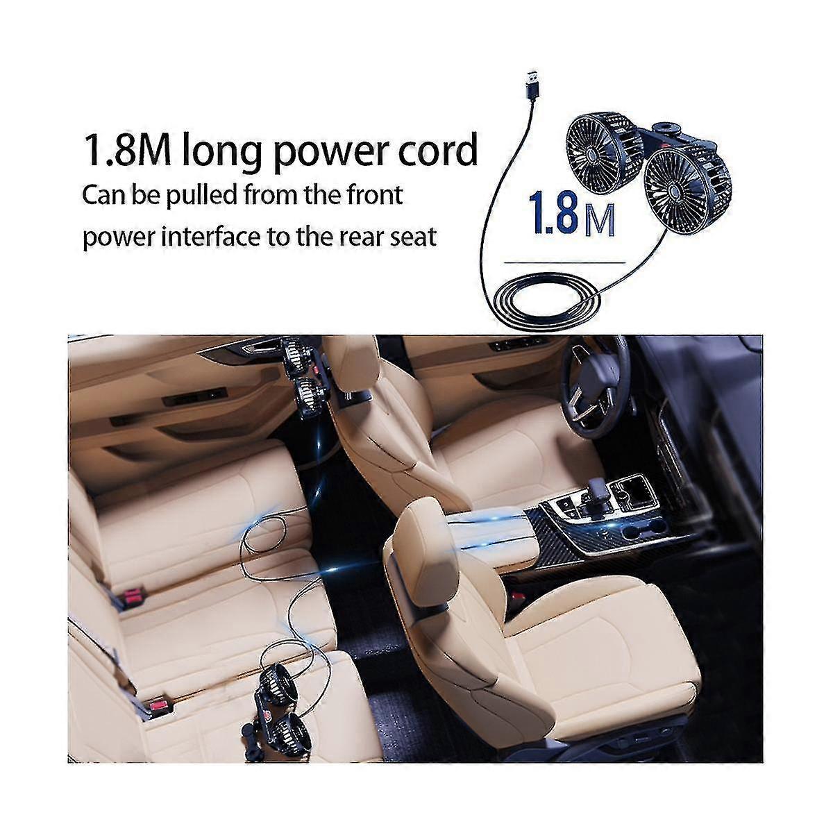 Fan For Car Electric Car Clip Cooling Fans Headrest Rotatable Dual Head 3 Speed Rear Air Fan