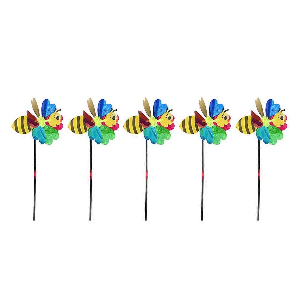Cartoon Windmill Colorful Windmill Toy Bee Shape Garden Lawn Indoor Outdoor Decoration Assorted Color 56x20cm Wind 5Pcs