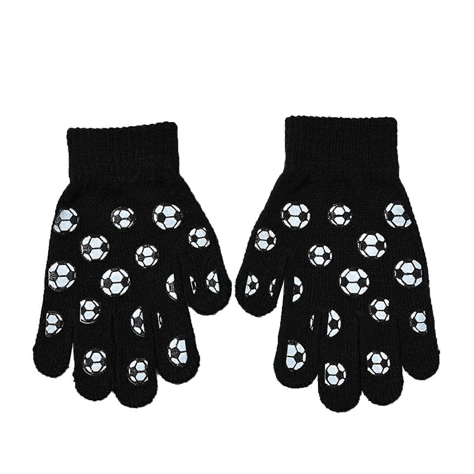 Cozy Stylish Gloves Children Winter Knit Gloves for Outdoor Activities Cartoon-themed Five Finger Hand Protections Gift Black