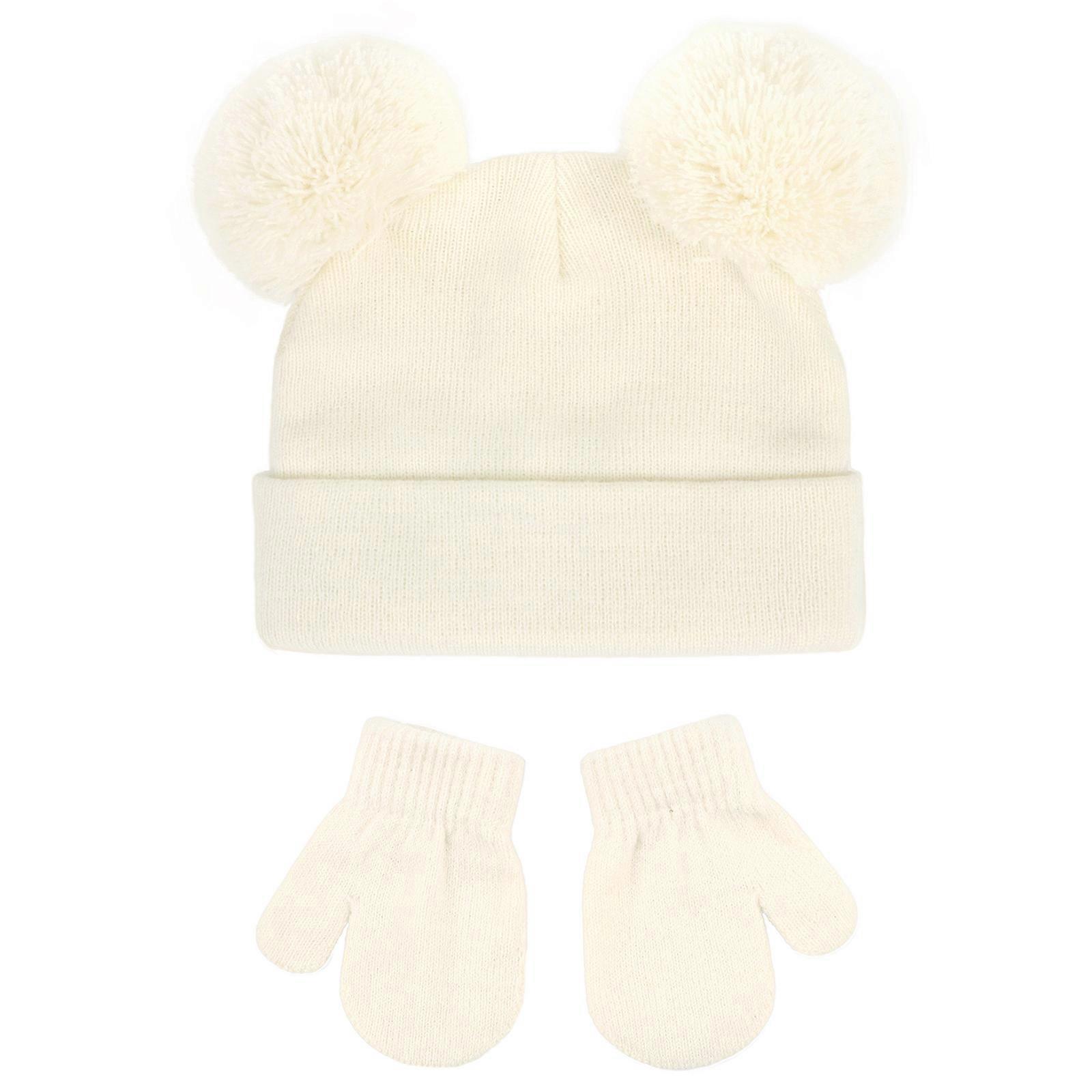 Comfortable & Not Irritating Baby Winter Accessories Set Hat & Gloves Knitted Baby Caps & Gloves set Comfortable Wearing Milky white M